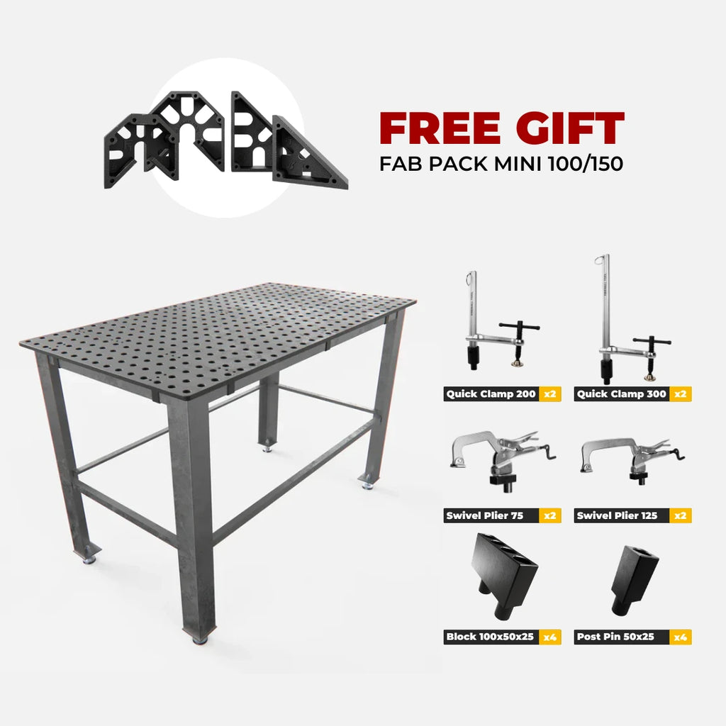 • Table holes are 16 mm diameter on a 50 mm grid, designed for use with the Fireball 19 mm system clamps and fixtures.